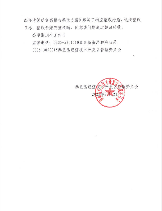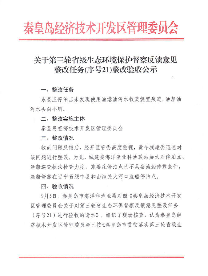 关于第三轮省级生态环境保护督察反馈意见 整改任务(序号21)整改验收公示
